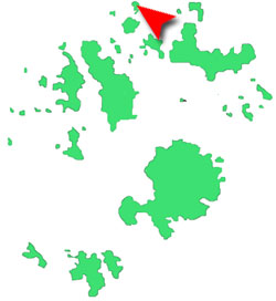 The Round Island lighthouse, as viewed from near the Island Hotel on Tresco. The Lighthouse was built in 1887, and only automated 100 years later in 1987.